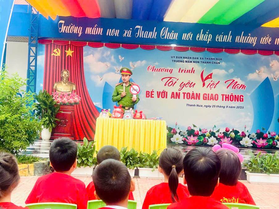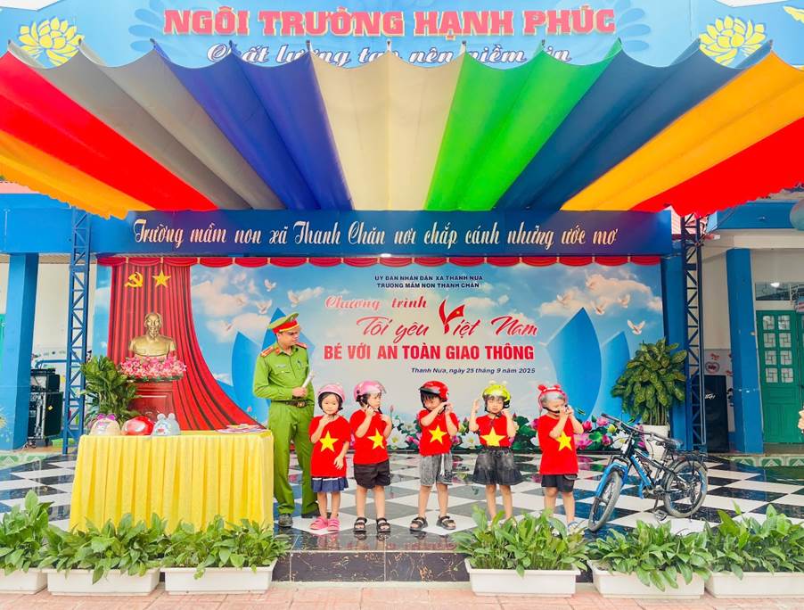 Sáng nay, ngày 25 tháng 9 năm 2025 trường Mầm non Thanh Chăn đã phối hợp cùng Công an xã Thanh Nưa tổ chức chương trình “Tôi yêu Việt Nam – Bé với an toàn giao thông” cho các bạn nhỏ.